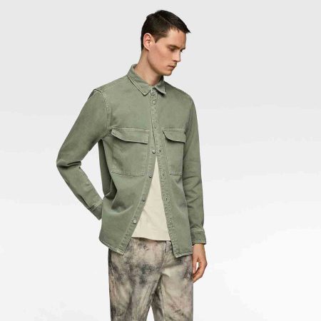 39.00£Relaxed fit overshirt with lapel collar and long cuffed sleeves. Washed effect. Front patch pockets with flaps. Side vents at hem. Front metal button closure.